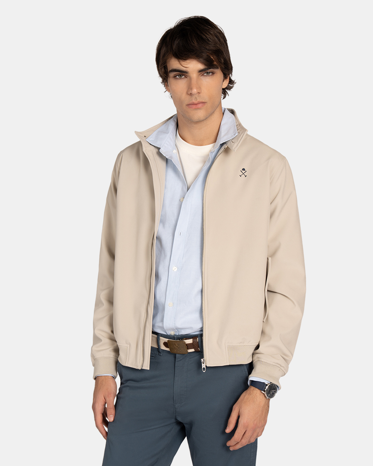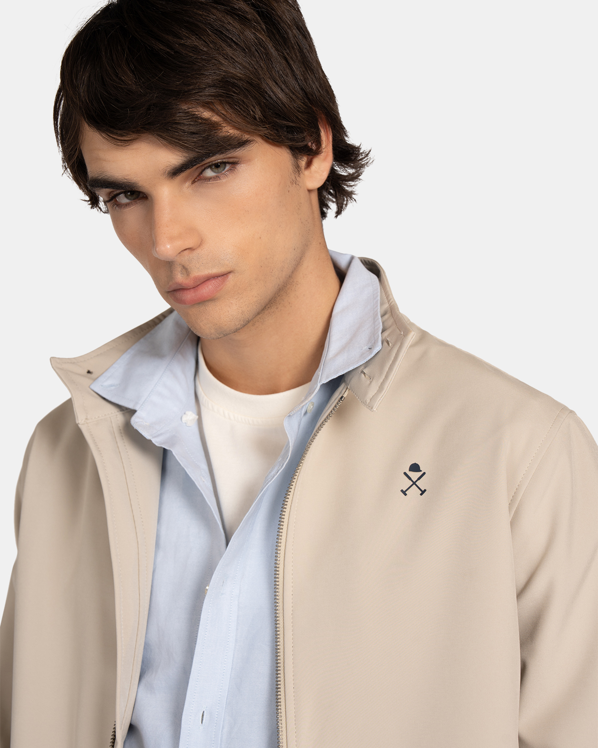 Harper Cazadora Harrington Cuello Mao Beige